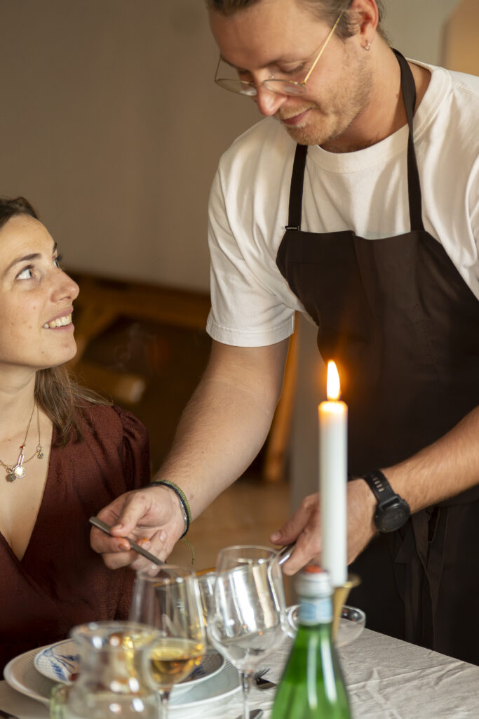 Vi tager os af det hele, så I kan læne jer tilbage, nyde selskabet og være fuldt til stede i oplevelsen. Det er gourmet, men uden facade — kun ærlig mad, håndværk og nærvær.